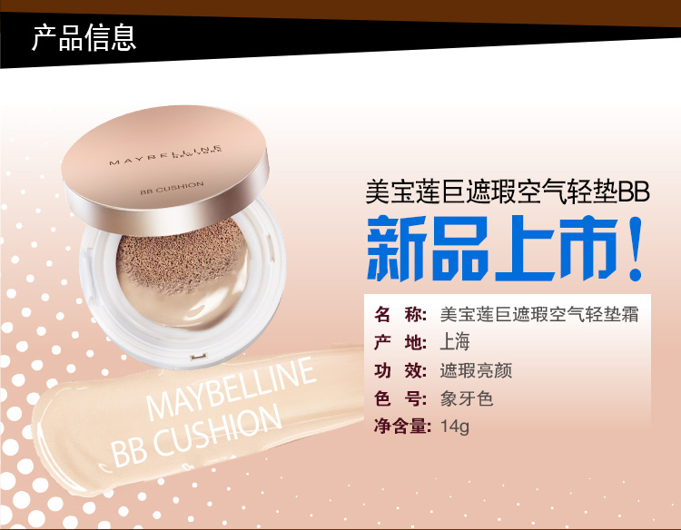 产品信息 Product Information温馨提示:此款商品没有塑封。 产品功效/功能 Product Functionality 卓效遮瑕,滋润水弹,细看近看都不怕。调色矿物微粉和水活保湿成分注入空气轻垫,长效储水。拍一拍,肌肤如陶瓷般水润。