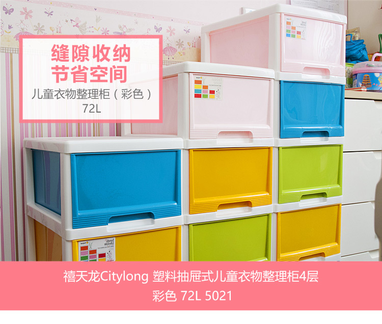 禧天龙Citylong 塑料收纳柜储物柜抽屉式四层儿童衣物玩具整理层柜 彩色72L 5021
